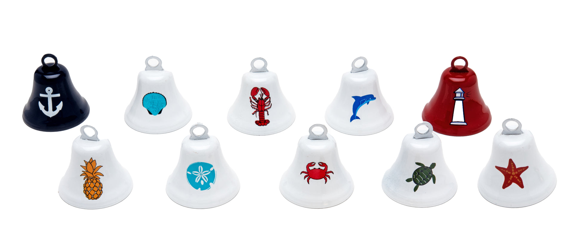 Make summertime a holiday with these classic and beautiful sounding steel, coastal ornament bells. All Made in the USA. We also sell them in holiday designs. Quantity discounts are available, please contact us for details. Or, if you love this bell, but want to do your own design, or add a personalized message, just visit our custom bells page.