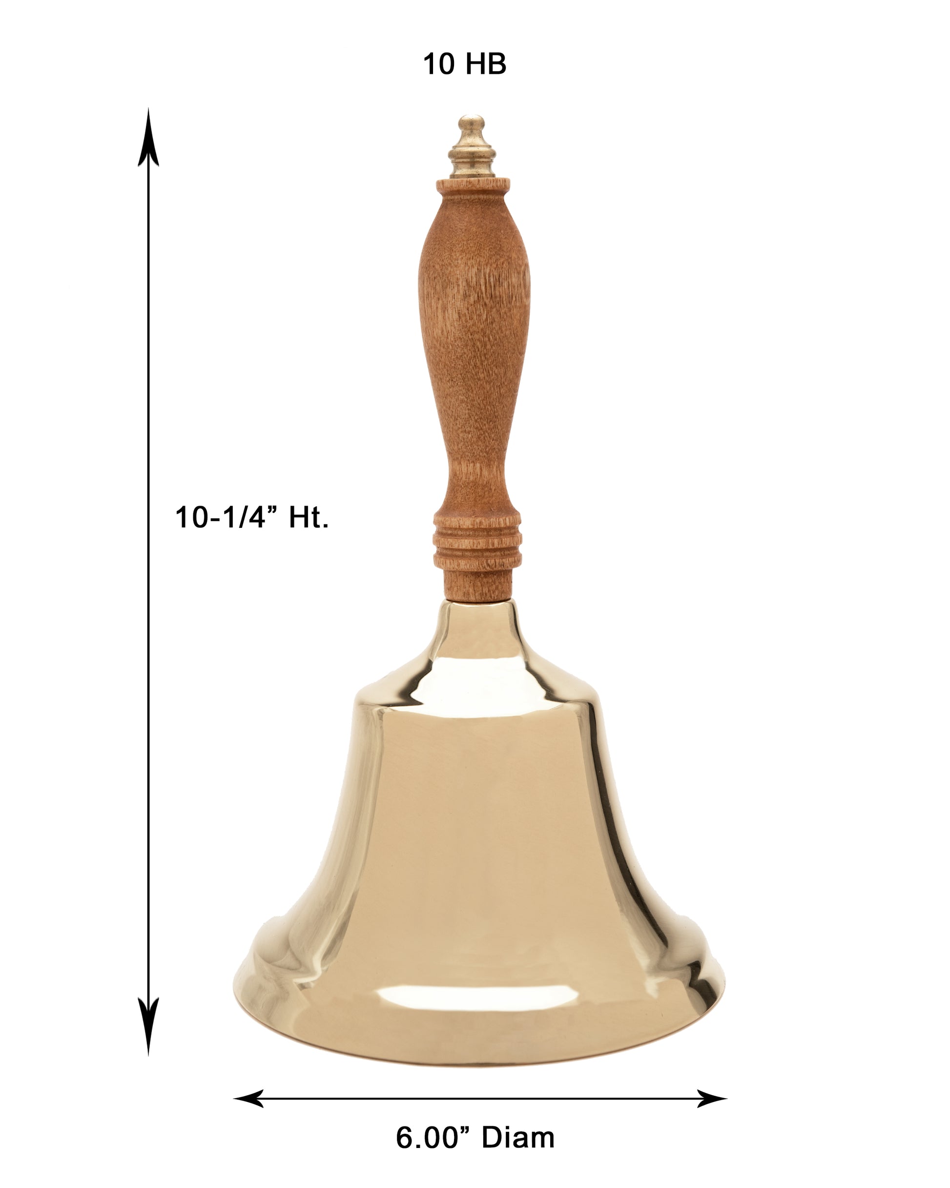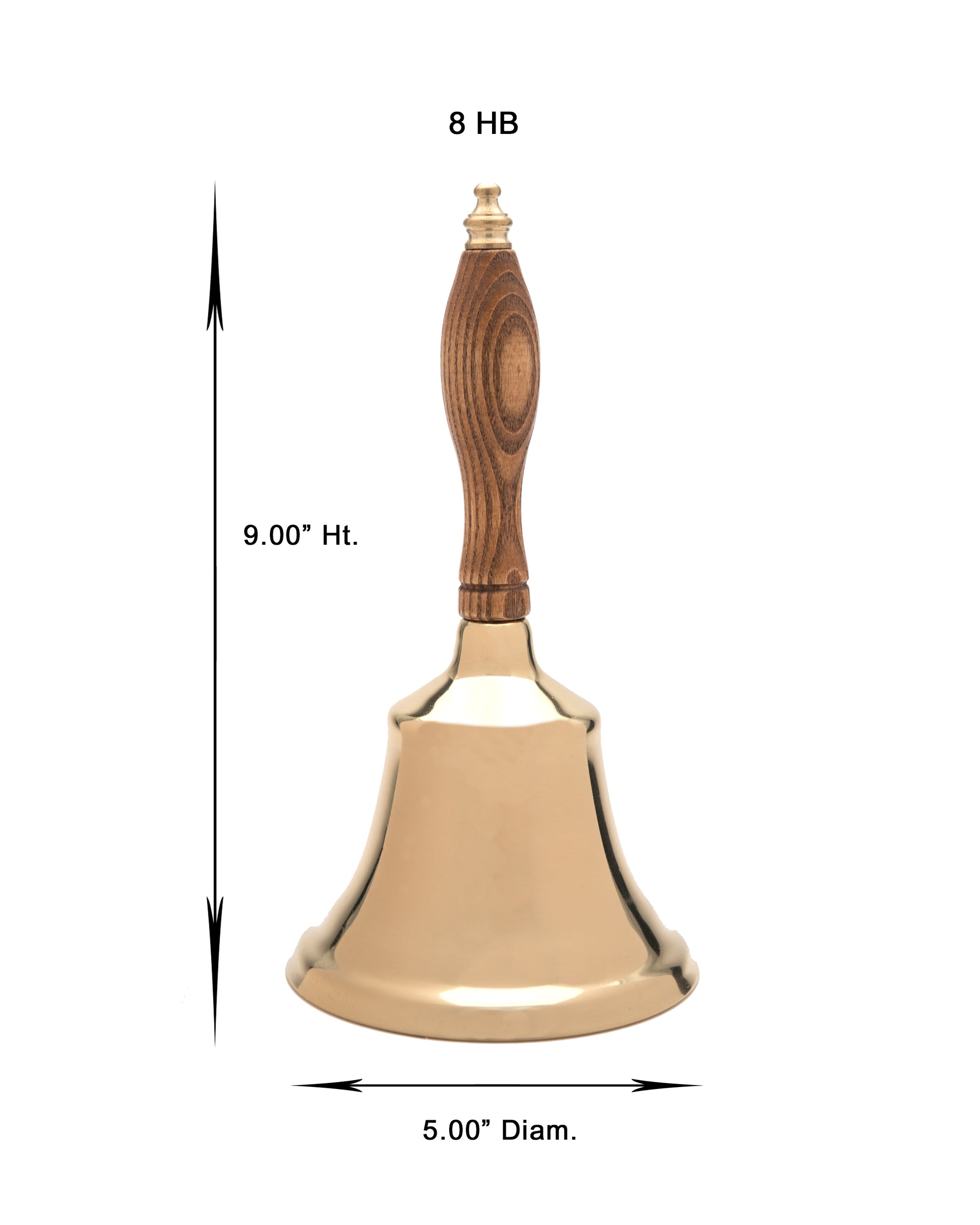 This is the royalty of bells. Show everyone how much class you have with this elegant, refined, and melodious bell. Crafted from solid brass and buffed to perfection, our handbells are topped with New England hardwood handles, and each one is made with love and care at our factory in Connecticut. Who could ask for anything more?